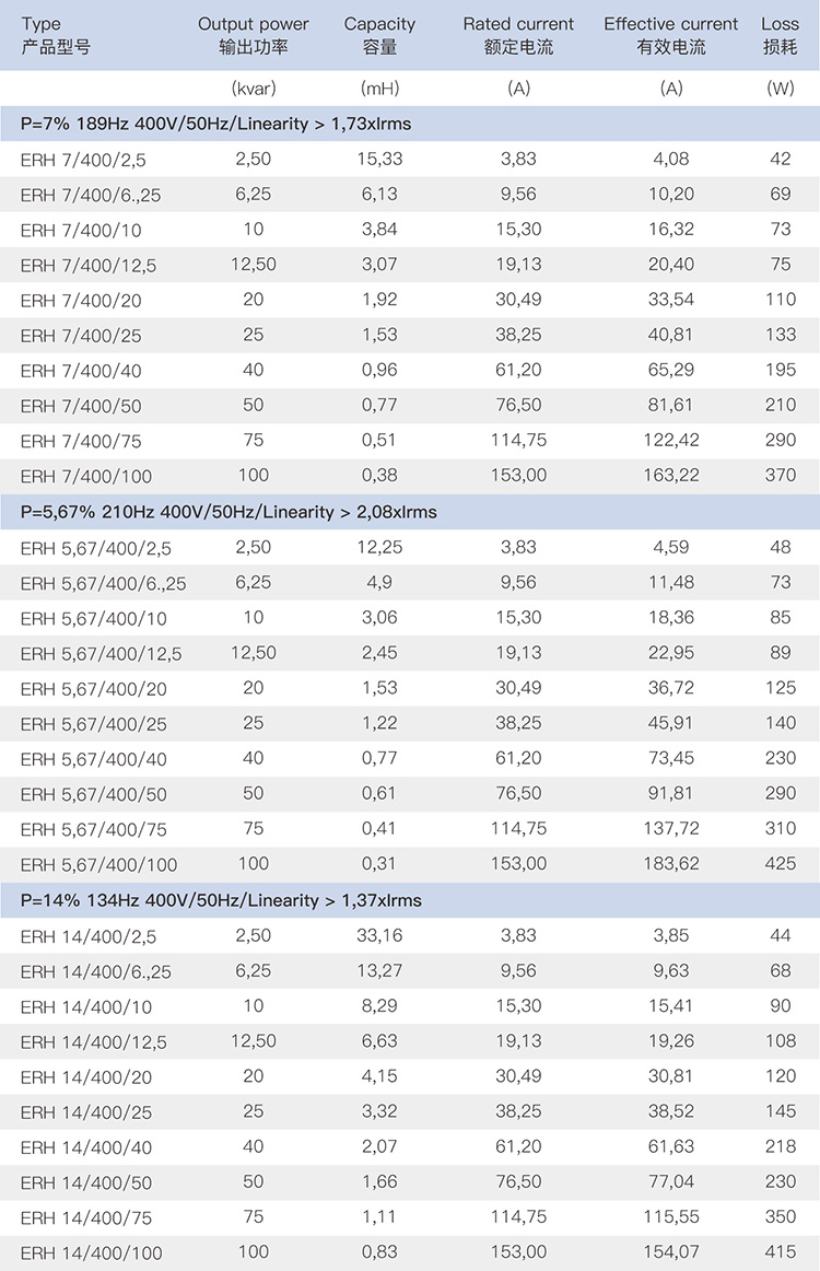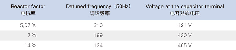 見下表;標準電抗器因數、諧振頻率和電容器端電壓見下表電容器單元標稱電壓應始終選擇在給定值之上。