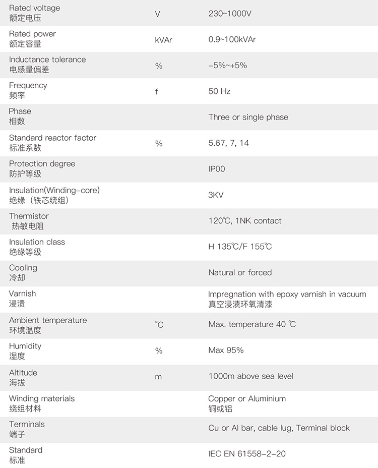 電路在額定電壓和頻率下的均方根電流不受瞬態影響,最大電流值和電感穩定性,當電抗器在電流上限上連續工作時,其電抗應相同。