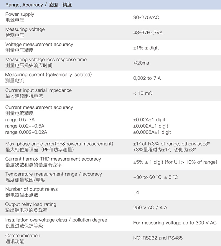 - 電流測(cè)量靈敏度2mA;